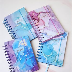 Agenda Diaria 2026 Espiral Planificadora Pasta Dura Diseño Marmol Tamaño Bolsillo