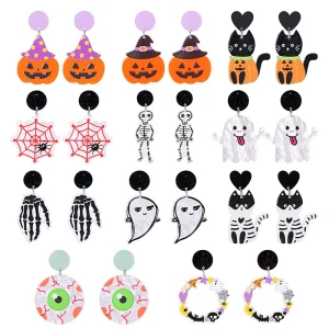 Aretes de Acrílico Calabaza Murciélago Cráneo Halloween