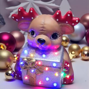 Figura de Cerámica de Reno Regalo Navideño con Serie de Luces 28x25cm