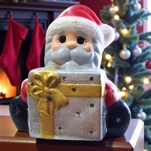Figura de Cerámica de Santa Claus Regalo Navideño con Serie de Luces 30cm