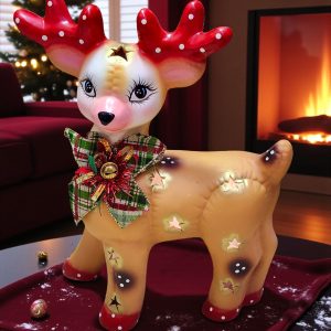 Lámpara de Cerámica en forma de Reno Echado Navideño 26 x 23cm