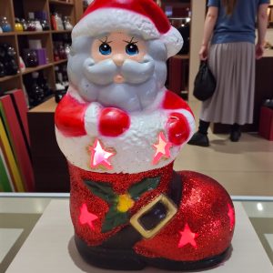 Lámpara de Cerámica Santa Claus en Bota Navideña 22 x 14cm