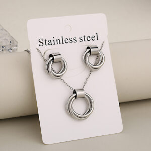 Set de Collar y Aretes de Acero Inoxidable – Diseño de Aros Triple Infinity
