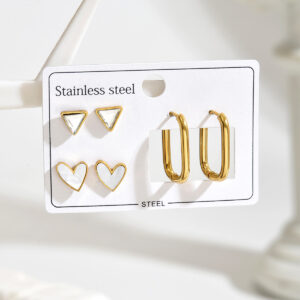 Set de 3 Pares de Aretes de Acero Inoxidable – Arracadas con Brillo y Broqueles Geométricos