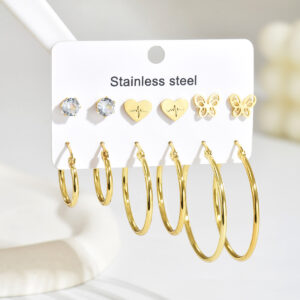 Set de 6 Pares de Aretes de Acero Inoxidable – Broqueles y Arracadas Doradas