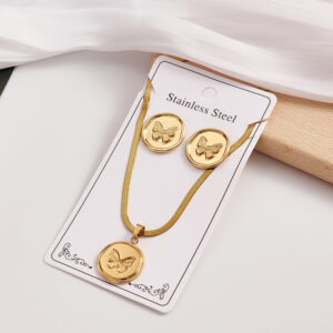 Golden Butterfly: Set de Aretes Medallón y Cadena Plana de Mariposa Acero Inoxidable ✨🦋