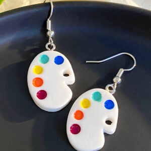 Estos aretes con forma de paleta de pintor son el accesorio soñado para artistas, diseñadoras y cualquier persona que ame los detalles vibrantes. Con sus manchas de color bien definidas, son una pieza divertida y llena de vida que añade un toque único a tu rostro.