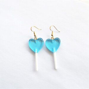 Aretes de Paleta de Corazón Azul – Diseño Kawaii con Destellos