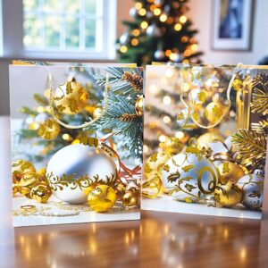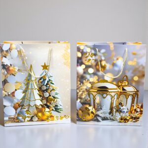 Bolsa de Regalo Navideña Mediana Pinos y Esferas Tonos Dorados