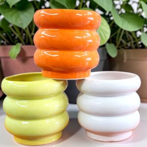Maceta de Cerámica “Michelin Wave” – Diseño Ondulado Minimalista (13×15 cm)
