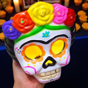 Lámpara Artesanal de Ceramica Craneo Calavera Frida Grande