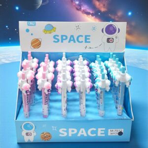 Pluma Retractil con Astronautas Girables Tinta Negra