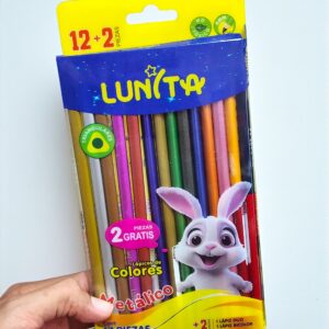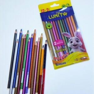 Blister con 12 + 2 Lapices de Colores Triangulares Metálicos Lunita Conejito