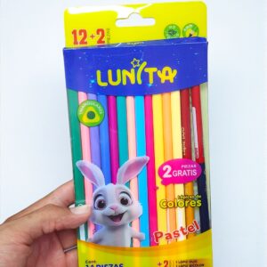 Blister con 12 + 2 Lapices de Colores Pasteles, Lapiz duo y Bicolor Lunita Conejito