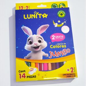 Blister con 12 + 2 Lapices de Colores Intensos Jumbo Triangulares Lunita Conejito