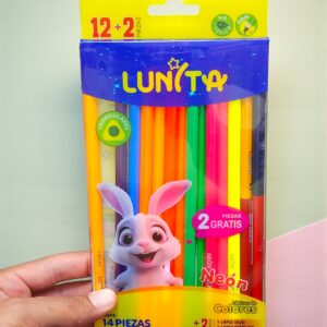 Blister con 12 + 2 Lapices de Colores Triangulares Neón Lunita Conejito