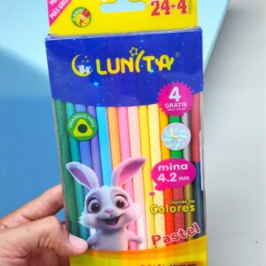 Blister con 24 + 4 Lapices de Colores Triangulares Pasteles Lunita Conejito
