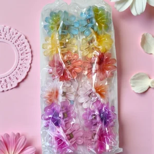 Dale un toque alegre y colorido a tus peinados con este pack de 12 pinzas para cabello en forma de flor. Con un tamaño de 3.5 cm, son ideales para sujetar mechones pequeños de manera cómoda y segura.