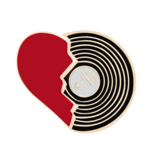 Music Lover: Un corazón rojo que se completa con la silueta de un disco de vinilo clásico en color negro y plata.