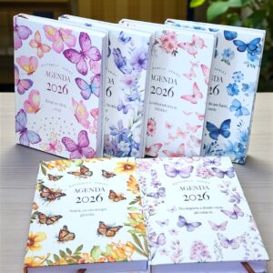 La Agenda Diaria 2026 con Espiral presenta una encantadora colección de 6 diseños inspirados en mariposas, ideal para quienes buscan una agenda funcional con un toque alegre y femenino.