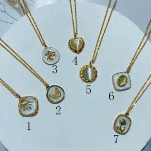 Collar Cadena – Medallón de Nácar y Oro Diseño Mariposa Acero Inoxidable (Marcado con el número 2)