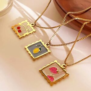 Collar “Cherry Pop” – Medallón Estilo Estampilla en Oro Acero Inoxidable