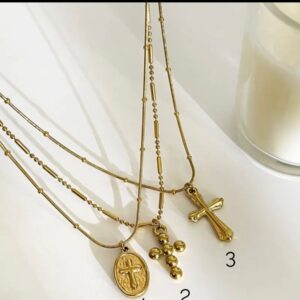 Reinventamos un clásico con un toque de arte antiguo. Este collar destaca por su dije de cruz con diseño orgánico y texturizado, que evoca la joyería artesanal de épocas pasadas. Sus formas redondeadas y su brillo dorado lo convierten en una pieza de declaración que combina fe y alta moda.