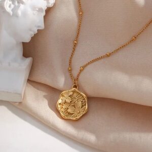 Collar Medallón “Atenea” – Relieve Floral en Oro Acero inoxidable