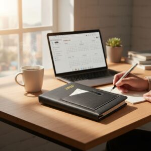 La Agenda Ejecutiva 2026 Vinipiel Tipo Gamuza combina un diseño moderno con un acabado premium que transmite profesionalismo y buen gusto, ideal para ejecutivos, estudiantes o emprendedores que buscan una agenda distinguida y funcional.
