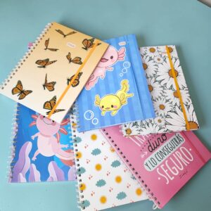 Espiral de Color: Cada libreta cuenta con un espiral metálico o plástico de color que combina perfectamente con el diseño de la portada.