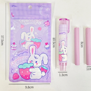 ¡Haz que borrar tus errores sea la parte más linda de tu día! Este set de borradores presenta un diseño adorable de "Strawberry Rabbit" (conejito con fresas) que le dará un toque mágico a tu estuche o escritorio.