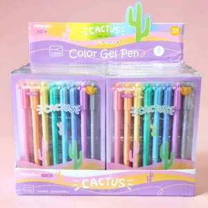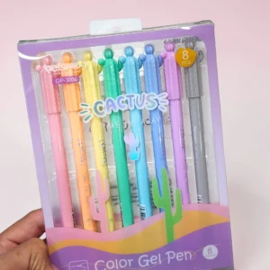 Set de 8 Plumas Diseño Cactus Tinta de Colores Pasteles