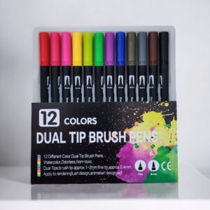 Blister con 12 Plumones de doble Punta Pincel y Rotulador Fino