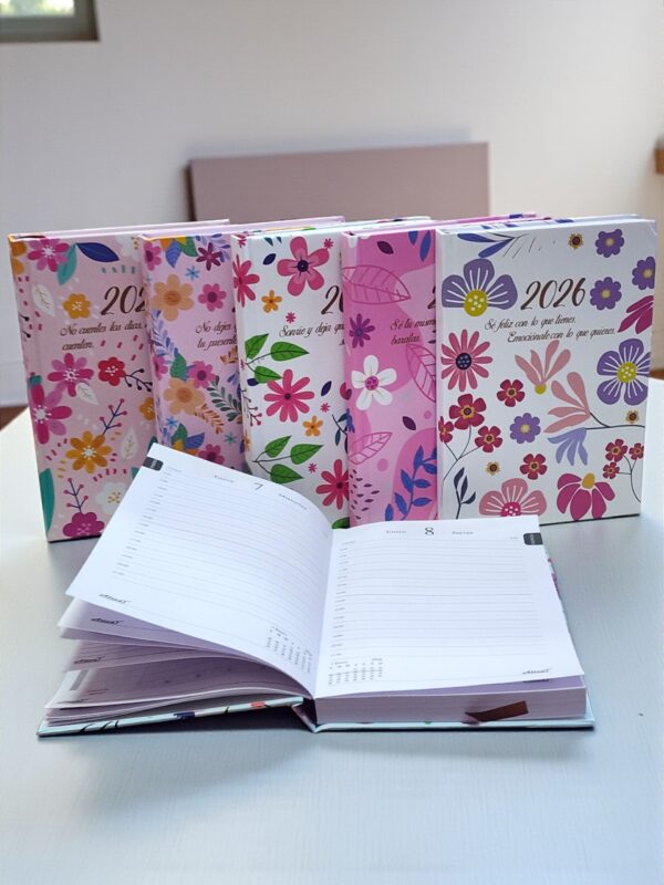 Agenda Diaria 2026 Cosida Planificadora Pasta Dura Flores Tamaño Frances