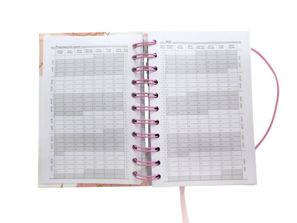 Se envia 1 Agenda Diaria 2026 Espiral Planificadora Pasta Dura Rosa Floral Tamaño Bolsillo de diseño al azar.