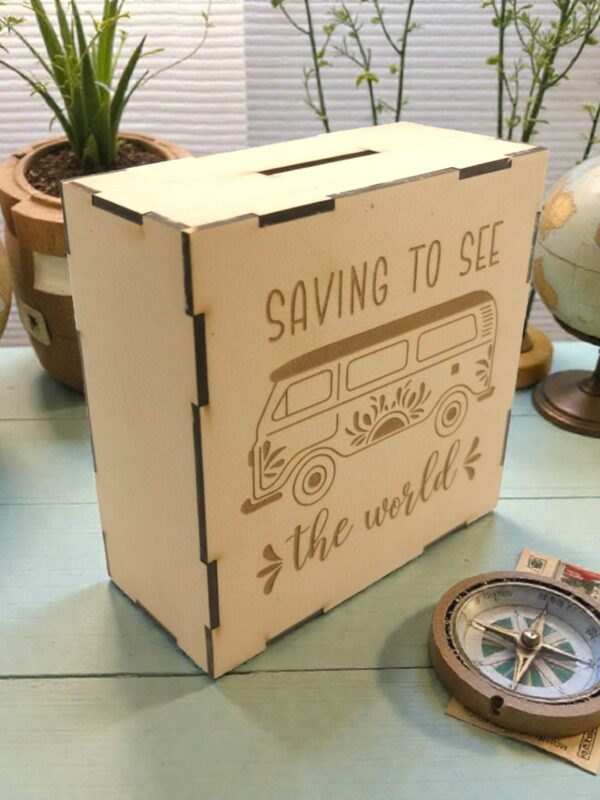 Alcancía Reto de Ahorro con Meta en MDF Saving to See The World 14.5 x 7 cm
