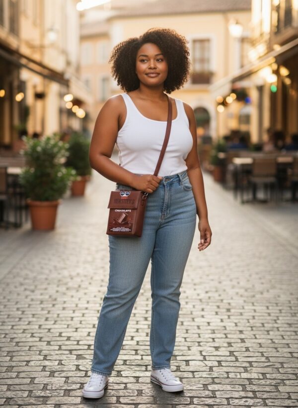 Bolsa Crossbody “Leche Hershey’s” – Diseño Pop Art 3D con Cadena