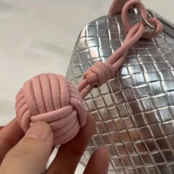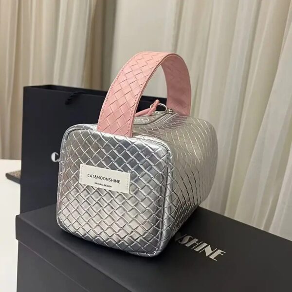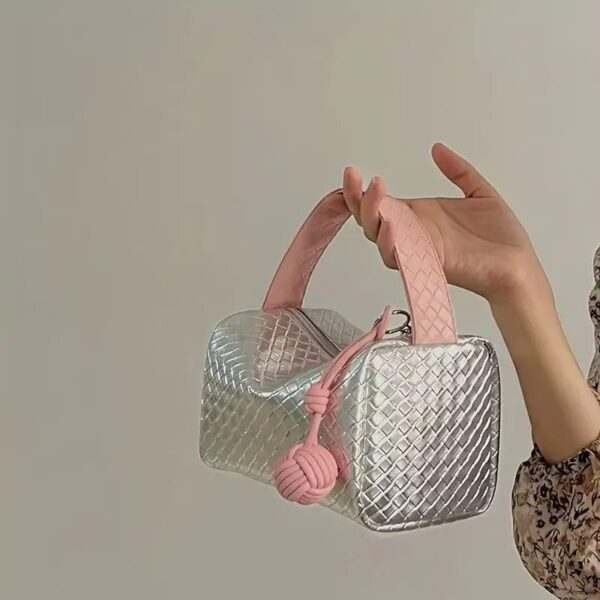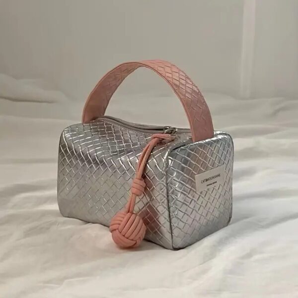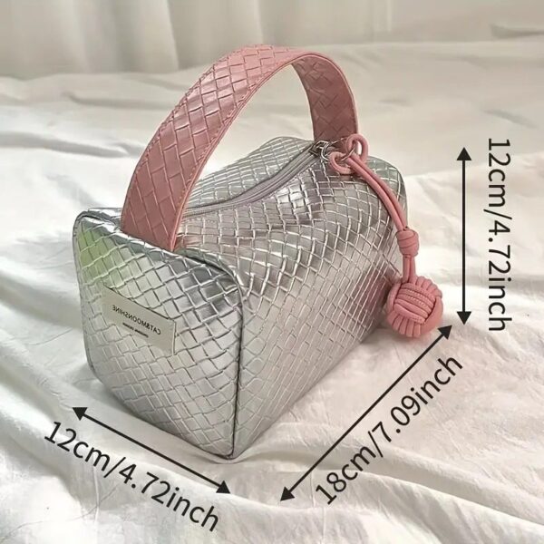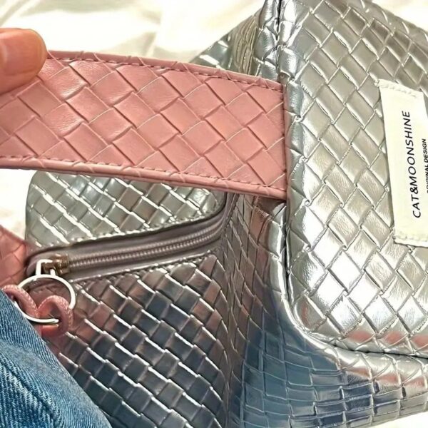 Cosmetiquera de Viaje con Asa Tejida, Material ViniPiel Plateada
