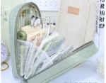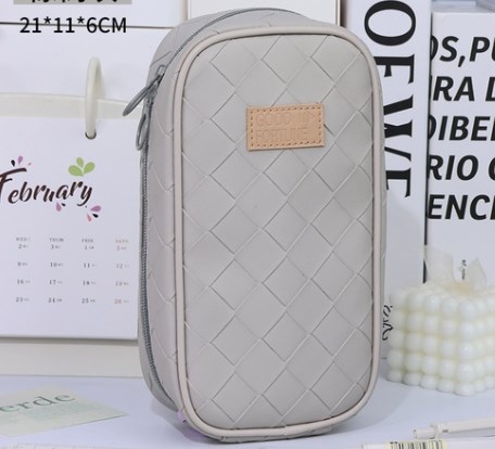 Estuche color beige y gris cuero sintético colegio estilo coreano
