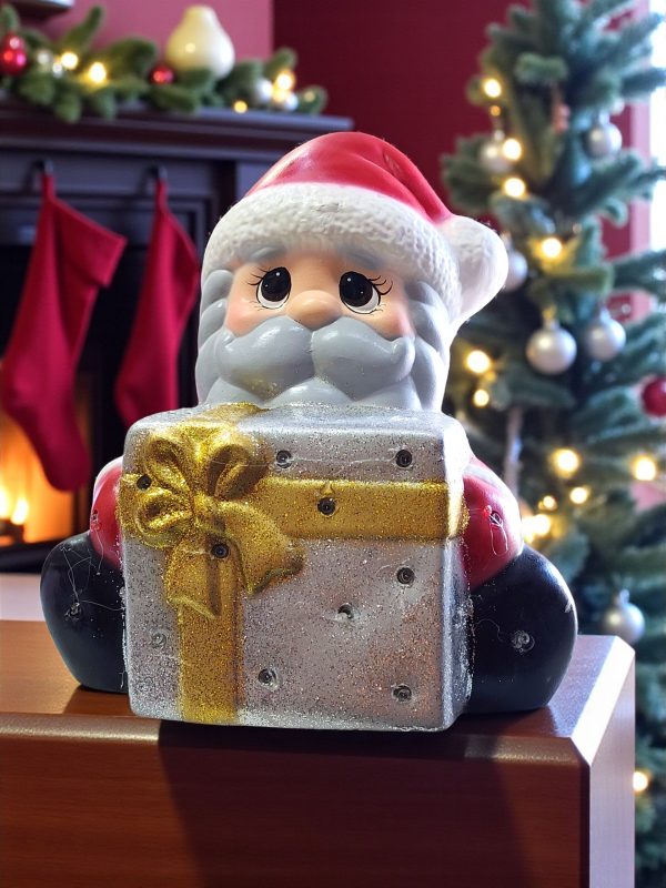 Figura de Cerámica de Santa Claus Regalo Navideño con Serie de Luces 30cm