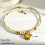Este collar tipo gargantilla es la pieza ideal para quienes buscan un estilo relajado pero elegante. El cordón trenzado en color crema con destellos dorados sostiene un dije de corazón robusto y brillante, creando un contraste espectacular que resalta cualquier tono de piel.