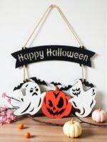 Letrero en MDF Decorativo Happy Halloween Fantasmas Calabaza