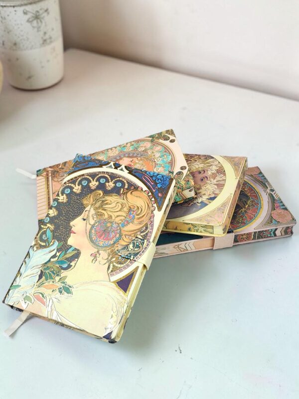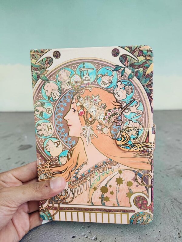Libreta Cuaderno Journal Artístico Alphonse Mucha “Zodiaco” – 112 Hojas de Raya y Canto Ilustrado
