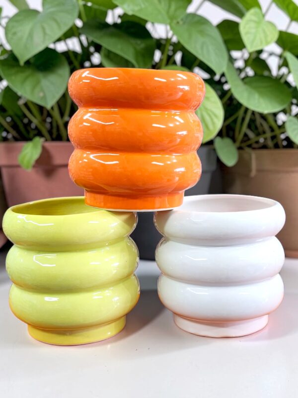 Maceta de Cerámica “Michelin Wave” – Diseño Ondulado Minimalista (13×15 cm)