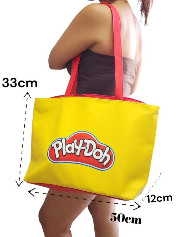 Inspirada en la marca que definió nuestra infancia, esta bolsa de Play-Doh es el accesorio perfecto para quienes aman los diseños vibrantes y funcionales. Su color amarillo icónico y su gran tamaño la convierten en la pieza estrella para tus salidas diarias, el súper, la escuela o incluso para llevar los juguetes de los más pequeños.