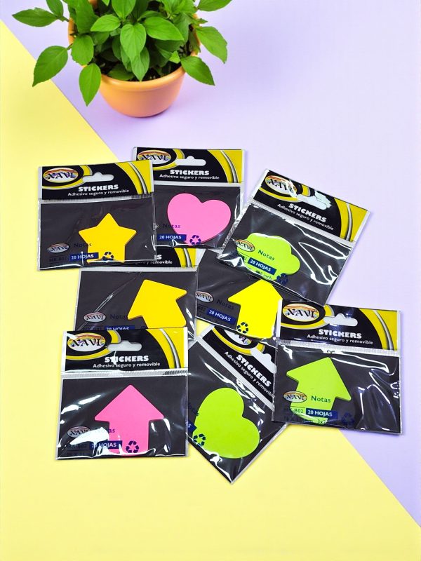 Bloc de 20 Notas Adheribles 7.6 x 5.1 cm (se envia forma al azar)