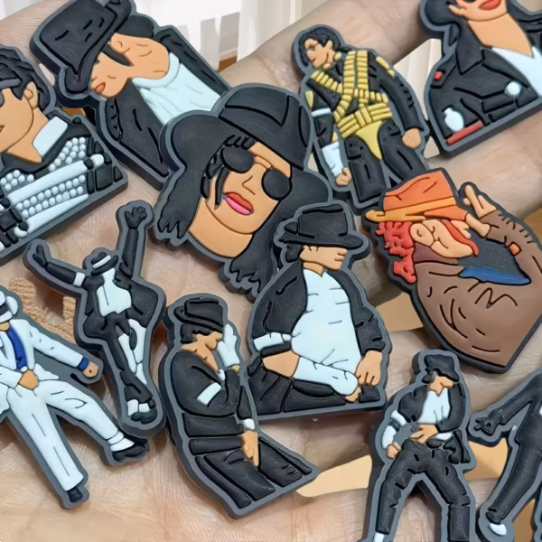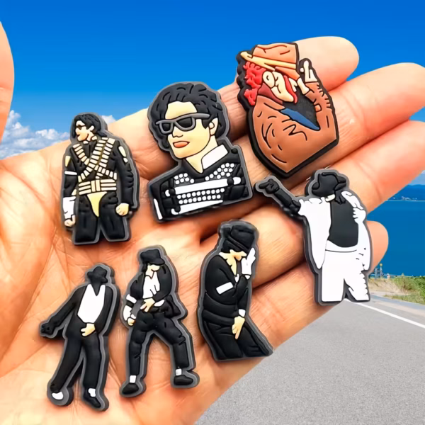 ¡Viste tus accesorios con el Rey del Pop! 🕺🏾 ¿Cuál te tocará? Estos pines de silicona son puro estilo MJ. Colecciona sus outfits más icónicos: desde el elegante traje blanco de “Smooth Criminal”, la pose lean gravity-defying, hasta el look de “Beat It” y “Dangerous”.