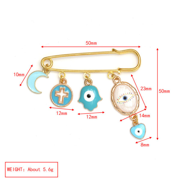 Pin Metálico en Forma de Seguro con Charms de Ojo Turco 38948043