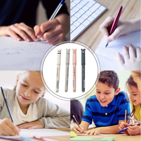 1 pluma de modelo al azar entre puerco, panda, oso y gato, por la parte de abajo tiene su borrador para borrar la tinta misma de la pluma.