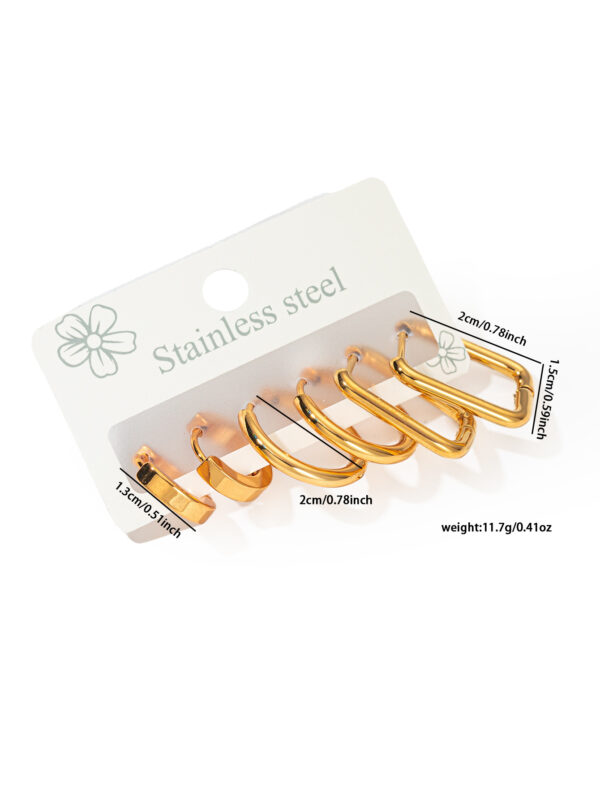 Este set de 3 pares de arracadas en acero inoxidable es la solución perfecta para un look coordinado y moderno. Combina los estilos más buscados de la temporada, desde la clásica arracada circular hasta la tendencia geométrica rectangular, permitiéndote crear un “stack” increíble si tienes varias perforaciones.